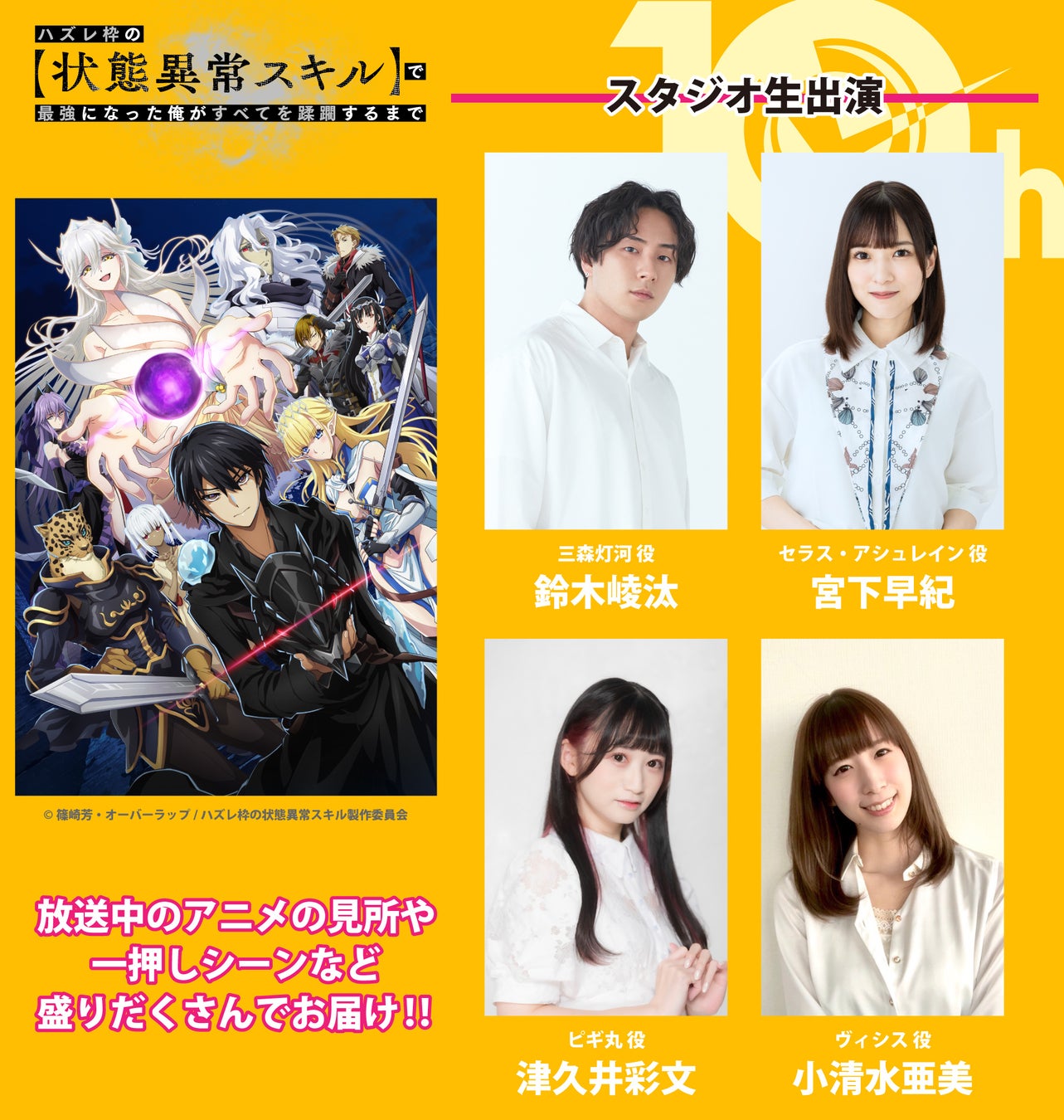 「ハズレ枠の 【 状態異常スキル 】 で最強になった俺がすべてを蹂躙するまで」鈴木崚汰、宮下早紀、津久井彩文、「ひとりぼっちの異世界攻略」梅田修一朗、直田姫奈がスタジオ生出演で作品を深掘り!
