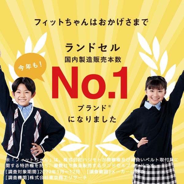 ※「フィットちゃん」は株式会社ハシモトが商標権及び背負いベルト取り付け具に関する特許権を持ち、複数社で製造販売するランドセルブランドです。