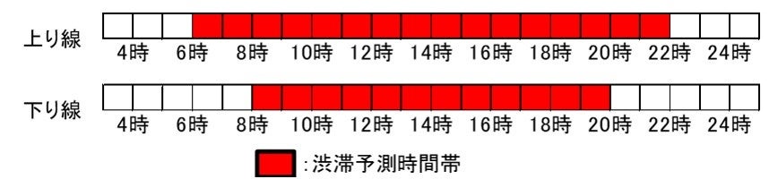 交通規制の実施に伴い、迂回やお出かけ時間の変更をご検討いただけるお客さまへの情報として、渋滞が予測される日の時間帯別の渋滞予測を地図形式で提供いたします。