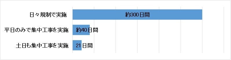 また、土日も継続して集中工事を実施させていただくことで、効率的に工事を進め、集中工事日数の削減を図っています
