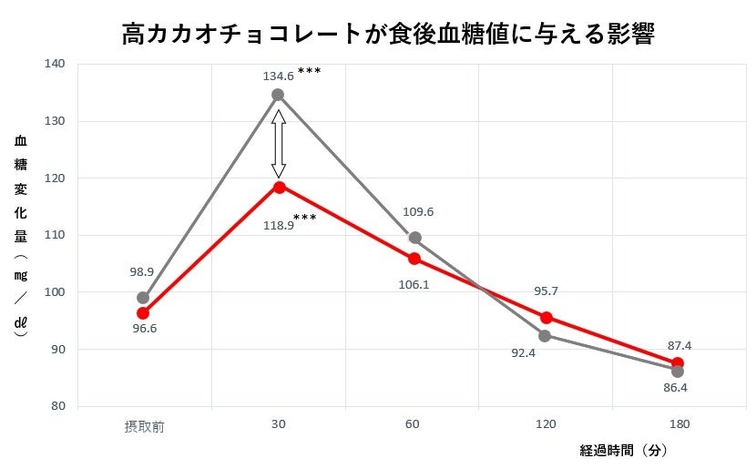“高カカオチョコを「食後に」食べるだけ” で高血糖対策、高カカオチョコレートの血糖値の抑制効果 ~ ヒト試験で明らかに~