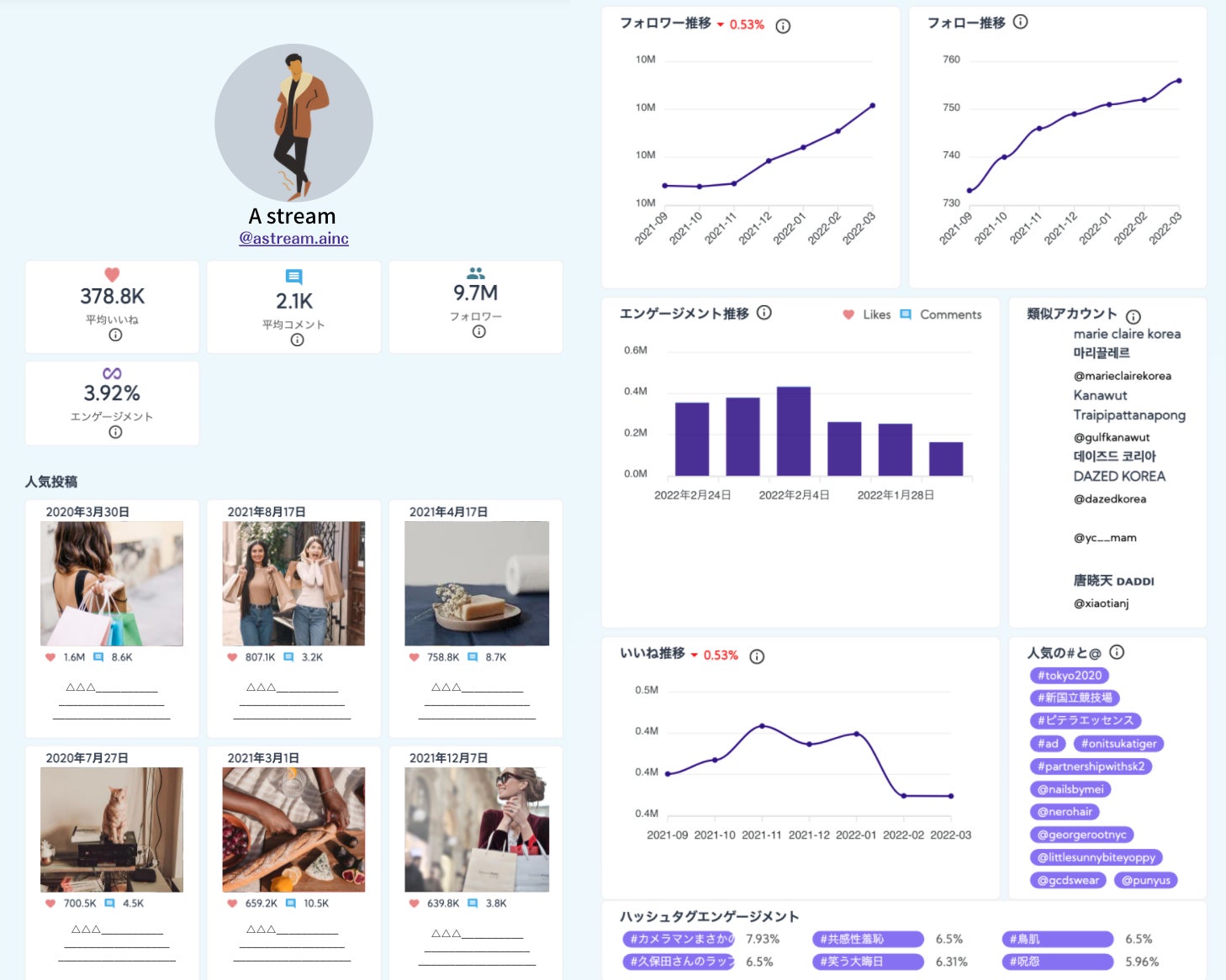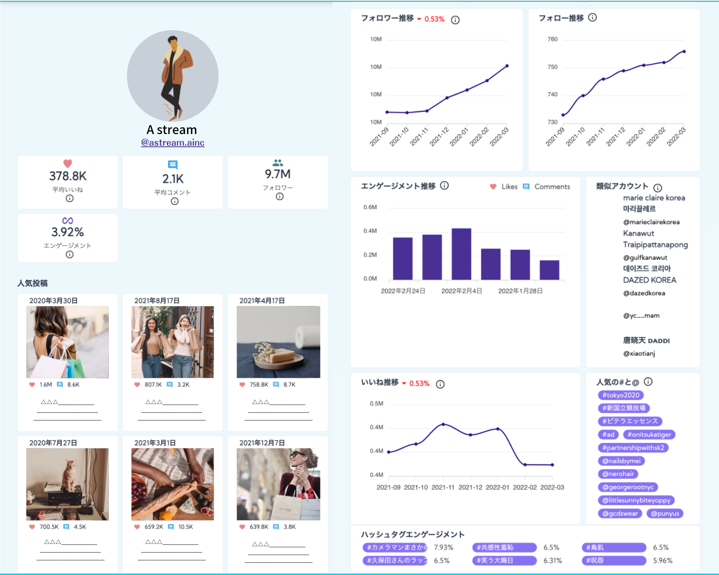 これまで手作業で行っていたインフルエンサーの発掘時間が1/3に軽減されるだけではなく、よりペルソナに近いフォロワーを抱えるインフルエンサーを抽出できることがA streamの魅力となっております。