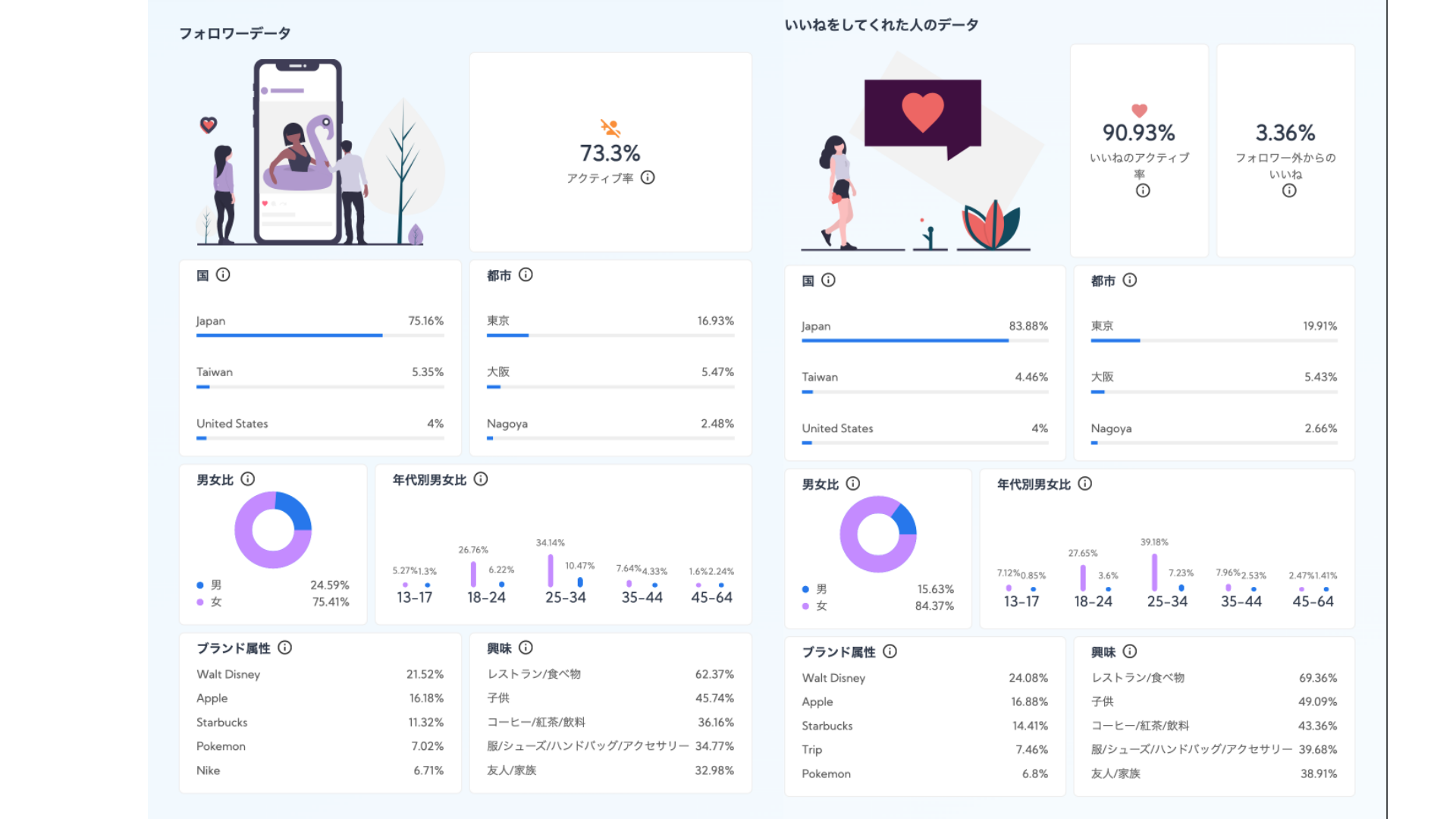 フォロワーの拠点としている都市情報を閲覧できます。地域特化型のPR投稿をする際有効的にご活用いただけます。