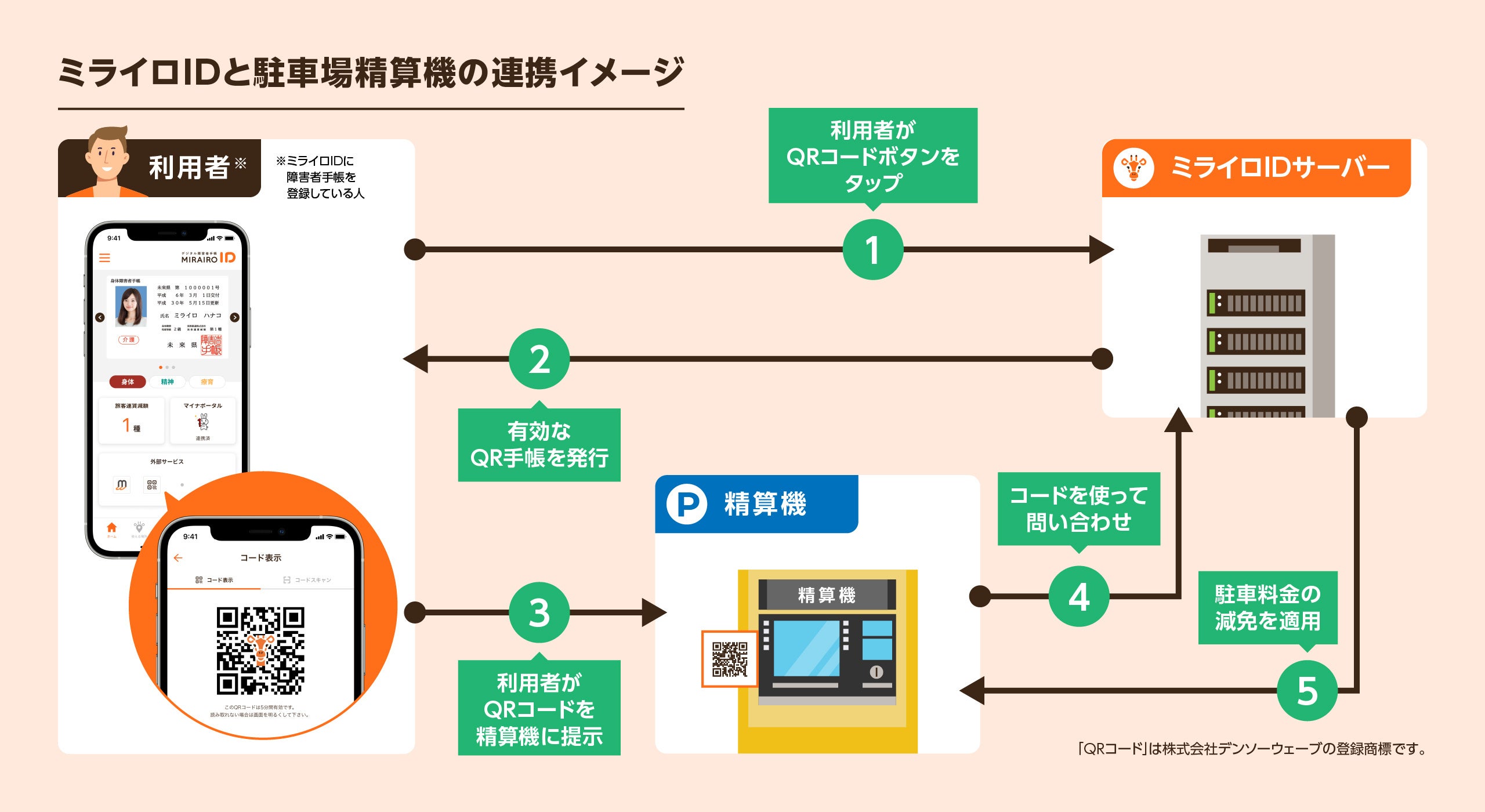ミライロIDと駐車場精算機の連携イメージ