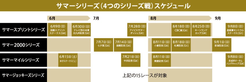 日本中央競馬会は、夏季競馬のチャンピオンを決める『サマーシリーズ』の開幕を記念し、6月3日(月)~8月6日(火)の期間、『サマーシリーズキャンペーン』を開催いたします。