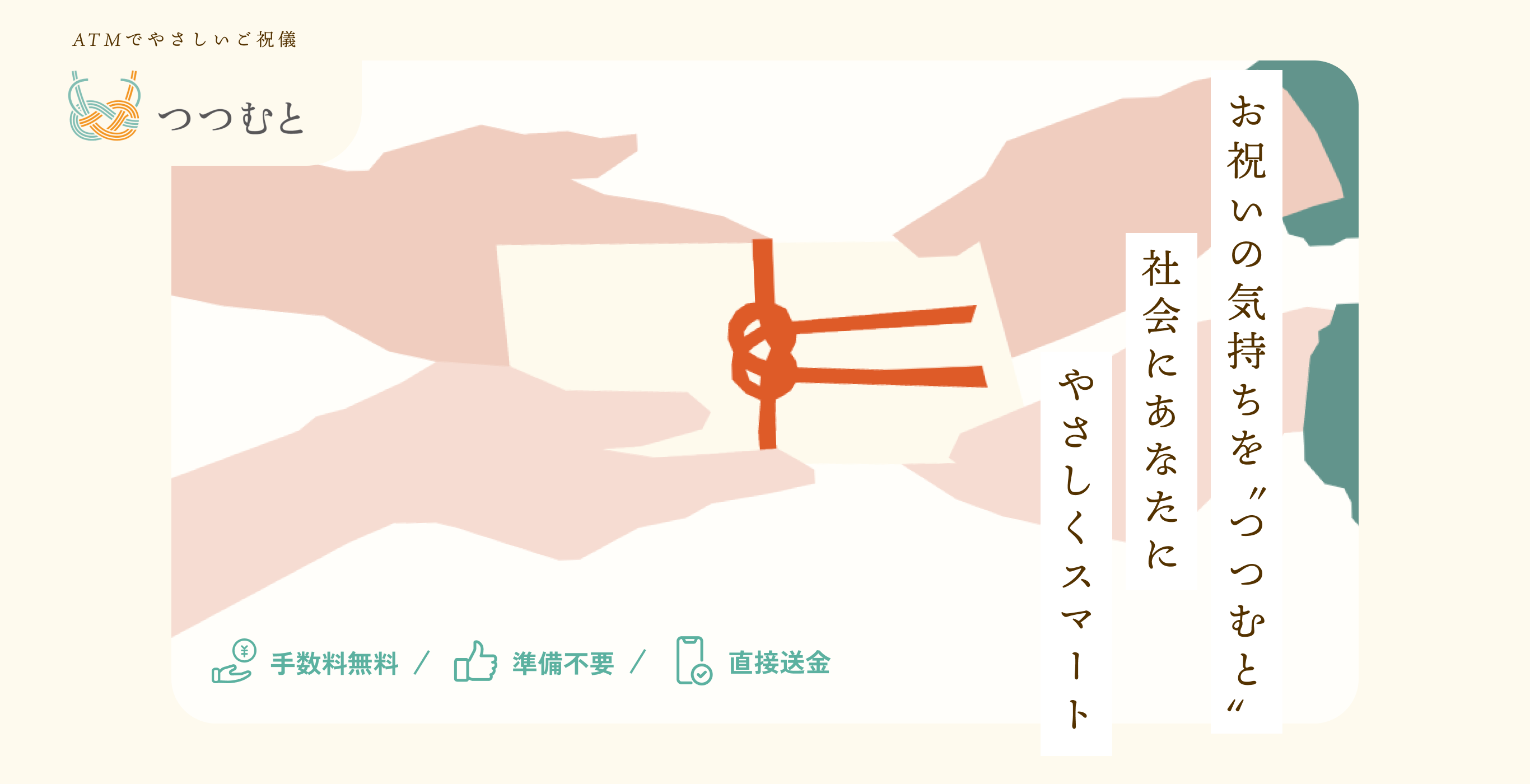 つつむとは、ATMという新たな手段でご祝儀を渡すサービスです。