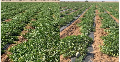 本試験は、2023年6月下旬、米カリフォルニア州のWoolf Farmingで開始。メロンの苗の根元に500倍に希釈したスキーポンを1回散布した区画と、散布しない区画との収量や糖度を比較しました。