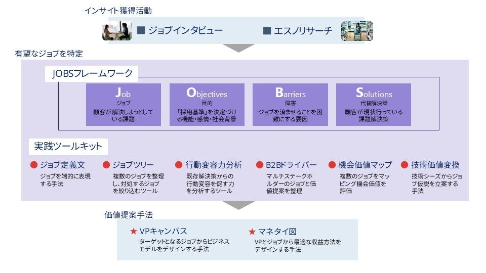 市場調査会社、研修会社、マーケティング会社などへのライセンス提供も予定しており、JOBSメソッドをより幅広い現場で活用できる仕組みづくりを進めていきます。