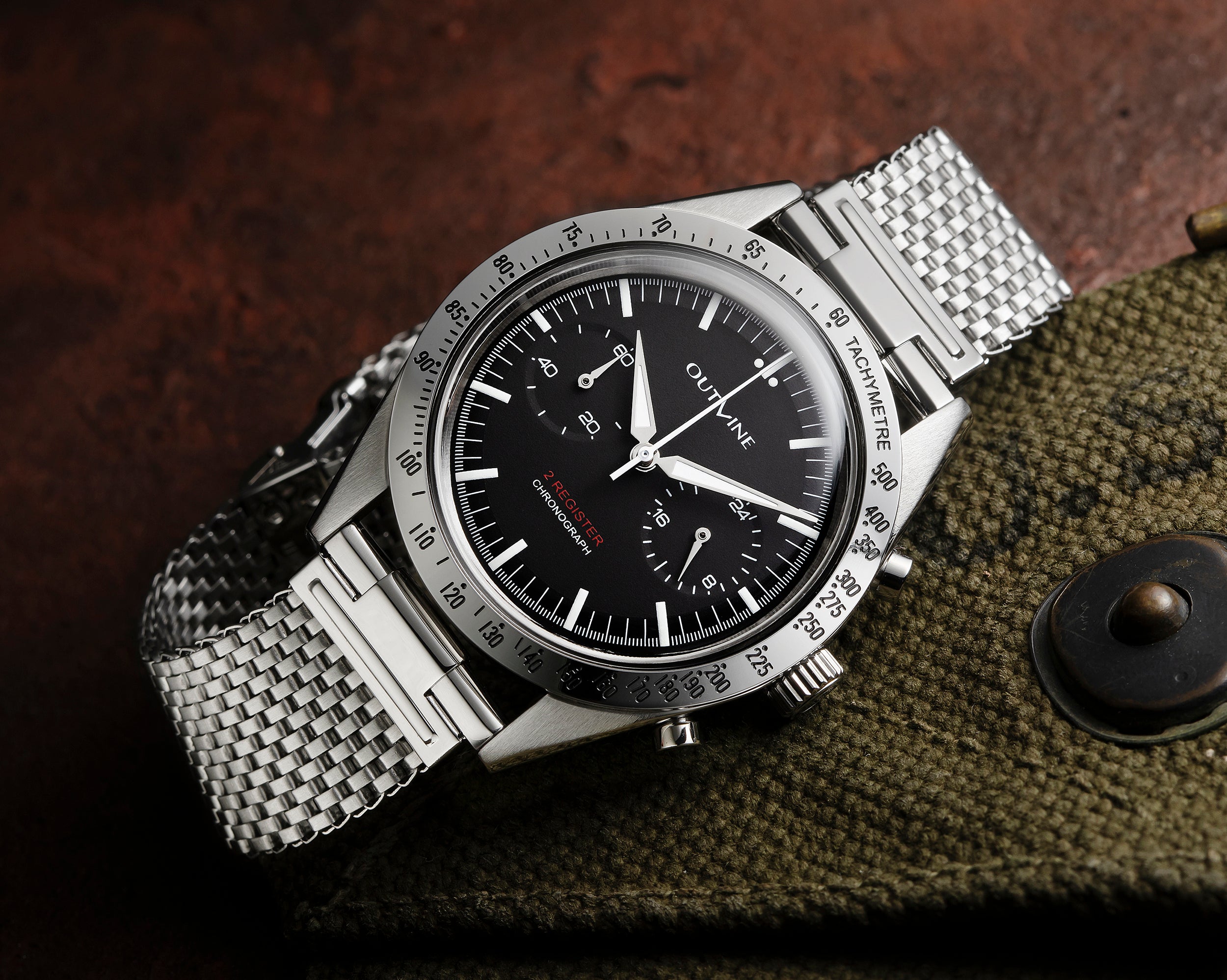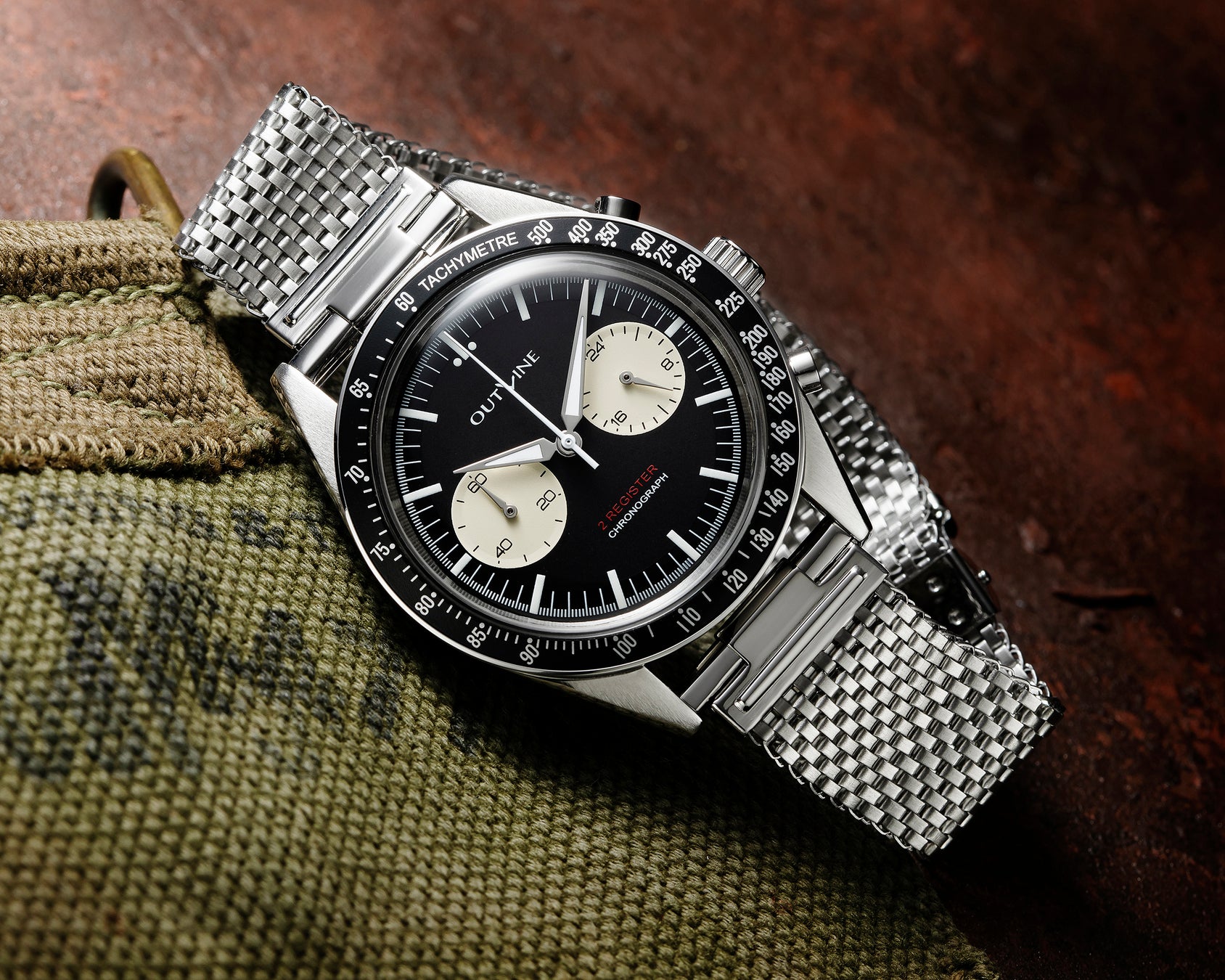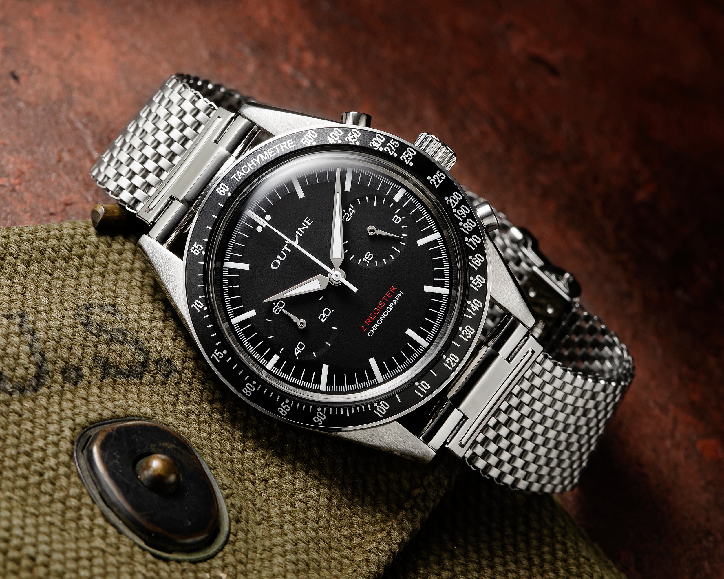 時計関連の雑誌、MOOKを専門とする出版社、株式会社シーズ・ファクトリー(所在地:東京都港区、代表取締役:菊地吉正)が、1940〜60 年代のアンティークウオッチの雰囲気をコンセプトに展開する時計ブランド「アウトライン(OUTLINE)」。この度、アメリカのブレスレットメーカー、フォースナーとのコラボレーションによって歴史的なブレスレットを標準装備した“アウトライン 2レジスタークロノ・シリーズ II ”を発表。4月20日(土)から時計のセレクトショップ「オンタイム・ムーヴ」の20店舗とアウトライン公式サイトにおいて先行発売を開始します。