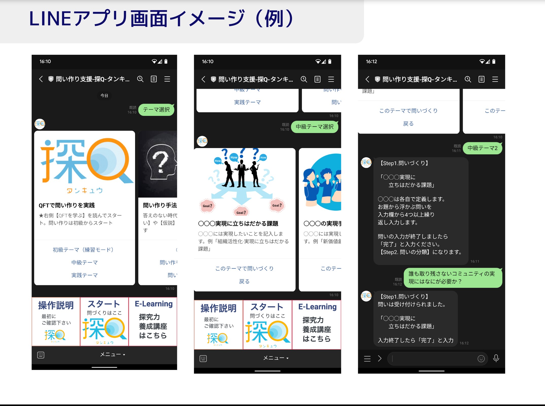 ひとりで「問いづくり→探求」が可能なLINEアプリ付きなので、学んだことを反復練習し、確実に定着させる仕組みも提供しています 。