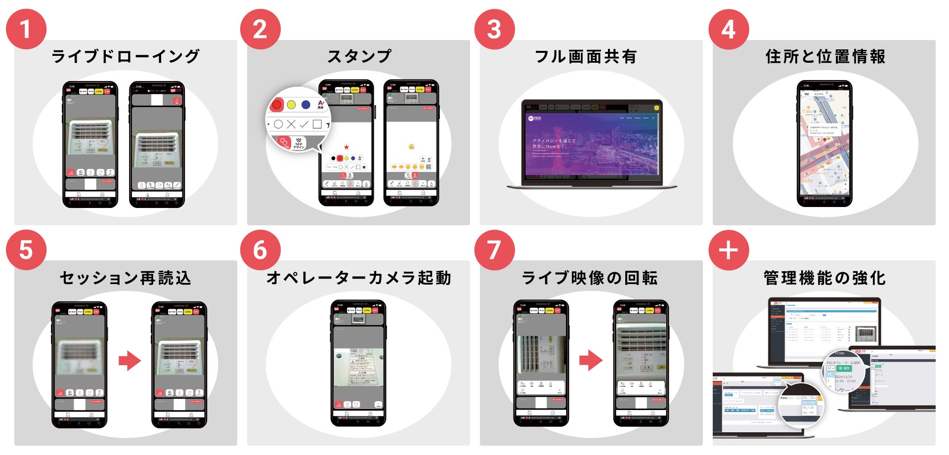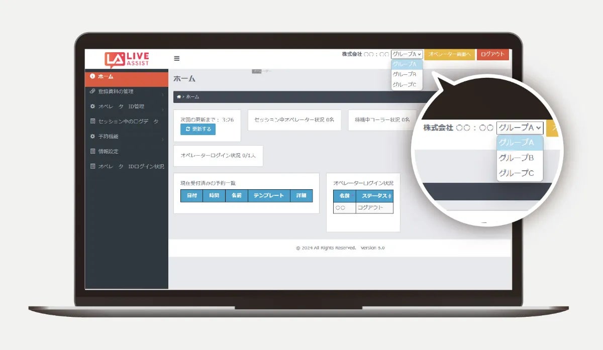 その他、既存ご利用者様からのご要望で性能アップした管理機能もリリースします。予約対応者が指名設定できる機能、複数のグループに所属してログイン切り替えができる機能、スナップショット画像のタグ検索機能、など多数の管理を強化しより便利にご利用いただけるようにしました。