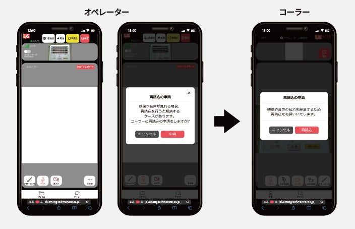 オペレーターも1クリックで外カメラを素早く起動できるようになります。通常はコーラー側のカメラでアシスト操作しますが、オペレーター側のカメラも同様に即時起動することでアシスト業務に役立ちます。