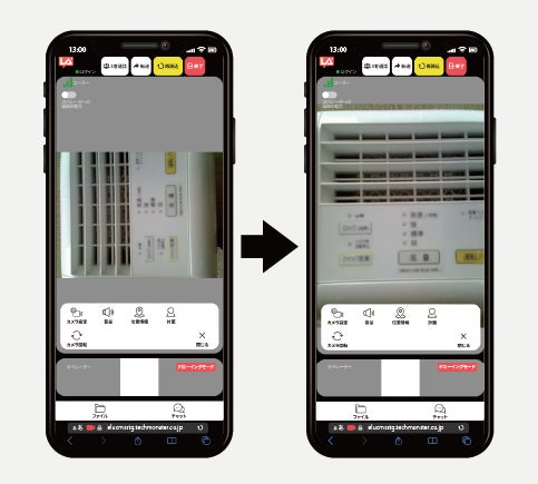 ライブ映像の向きを回転させて遠隔サポートできるようになります。スマホの横持ち撮影や逆さに表示された対象物も、ライブ映像を回転して読みやすい表示向きに調整ができる機能です。