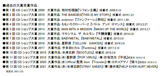 又、今後の予定については CD ショップ大賞のホームページのほか、SNS等でも発表、紹介していきます。