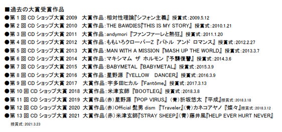 このたび、CD ショップ大賞実行委員会は、第 14 回 CD ショップ大賞 2022 入賞作品を発表致します。