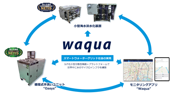Waquaは、水を通じて社会インフラを整え、あらゆる産業の生産性向上に寄与し、すべてのステークホルダーとの持続的な共存共栄を目指している。