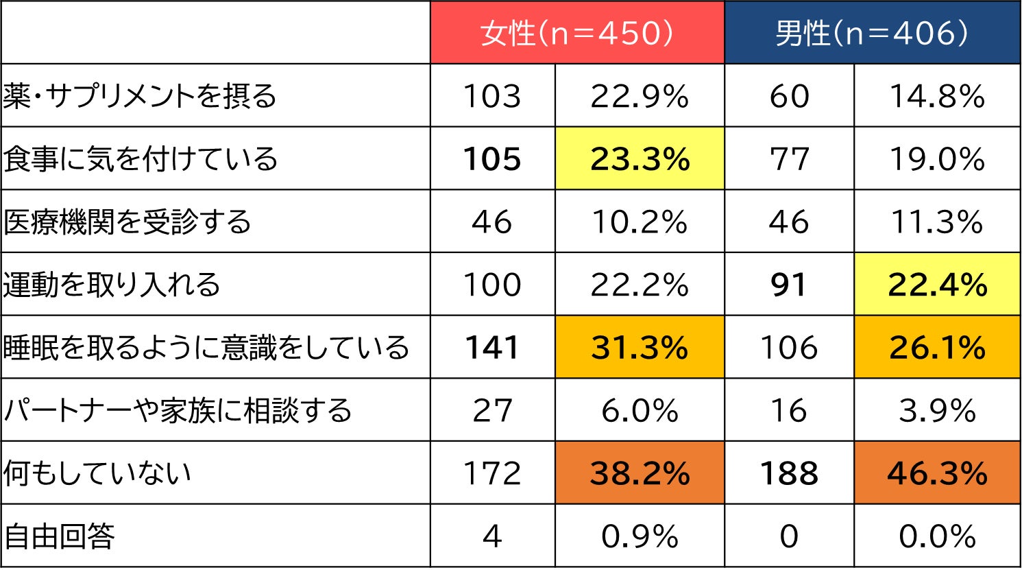 更年期対策は十分ではない一方、睡眠・食事・運動などで