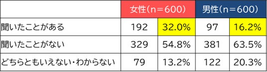 更年期に対する認知度は男女で大きな差あり。