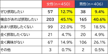 女性は情報認知度が高く、男女ともに過半数が「セロトニンを摂取したい」と回答。