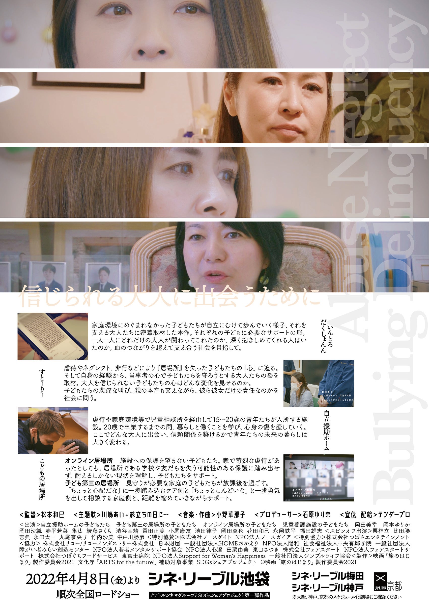 その第一作目の作品は、”子どもの居場所”がなくなっている社会で、子どもたちが悲鳴を上げている現状を追いかけ、それを支える大人たちのドキュメンタリー映画です。とある自立援助ホームを中心に、御殿場、名古屋、沖縄、長崎、藤沢で現場取材を行い、当事者の声をまとめ上げた映画「旅のはじまり」がシネ・リーブル池袋で4月8日(金)から公開されます。シネ・リーブル梅田、シネ・リーブル神戸、UPLINK京都でも追って上映されます。