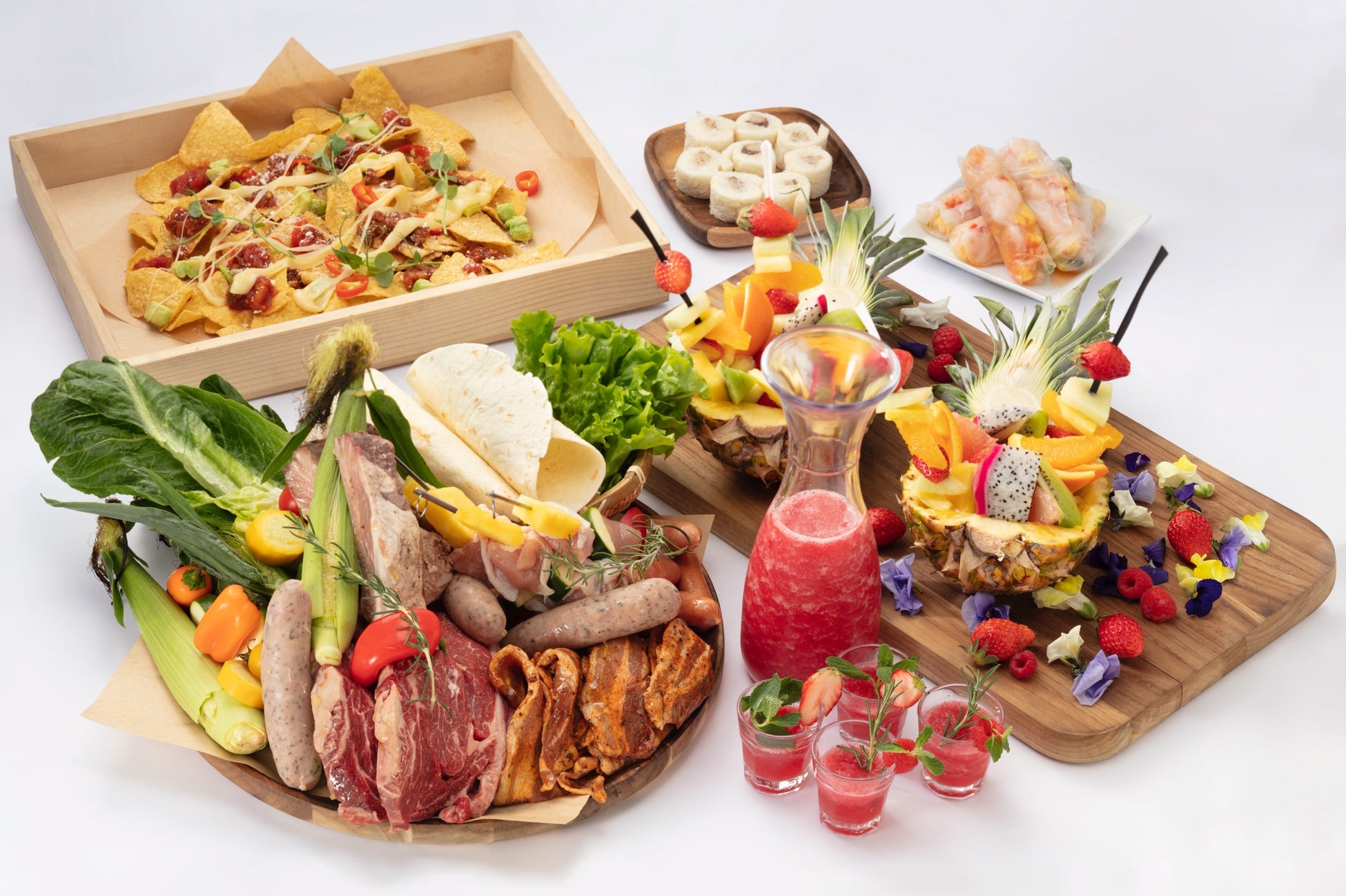 「ルーフトップバーベキュー」では、アジアの南国をイメージし、ソースやスパイスにこだわった異国情緒あふれるオリジナルプランをご用意しております。こだわりのメニューは、自身でアレンジするオリジナルナチョスや国産と肉厚にこだわったBBQ盛り合わせ、昨年好評だったたこ焼きから、パイナップルボートやオリジナルマンゴーパフェに加え、自家製のレモネードサワーや旬な素材のフルーツショットをはじめとしたドリンクメニューも豊富に取り揃えています。