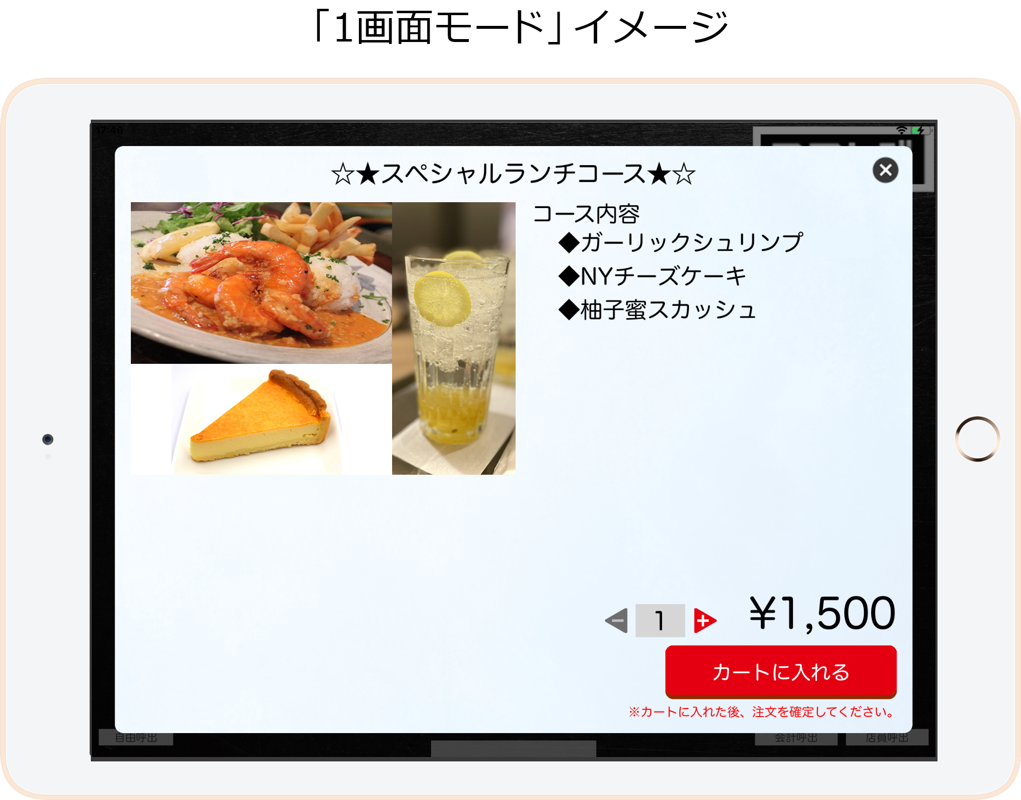 選択肢が決まっているコースに関しては、1画面に表示させる「1画面モード」の選択も可能です。