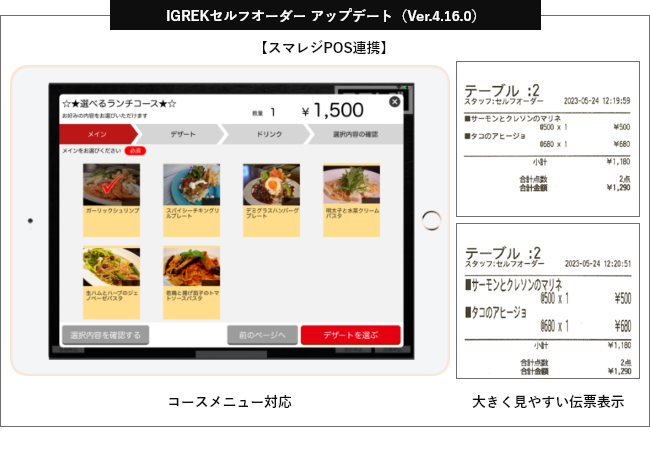 ~コースメニュー対応・大きく見やすい伝票表示をスマレジ連携で実現~