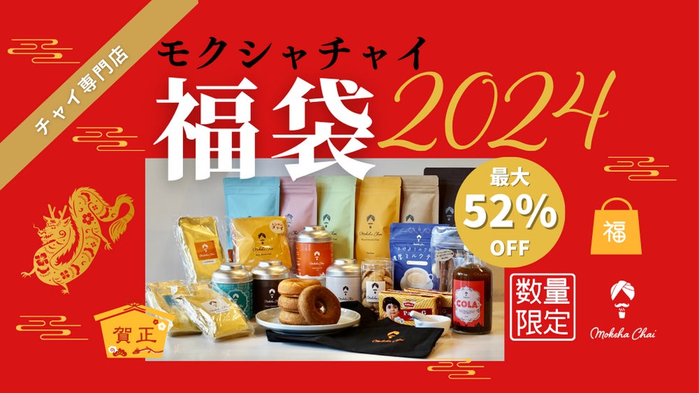 中目黒のチャイ専門店モクシャチャイの福袋2024の販売をスタートいたします!AからEの5種類からお好きな福袋をお選びいただけます。年に一度の最大の感謝セール!今年一年の締めくくりに是非!売り切れ次第終了になります。