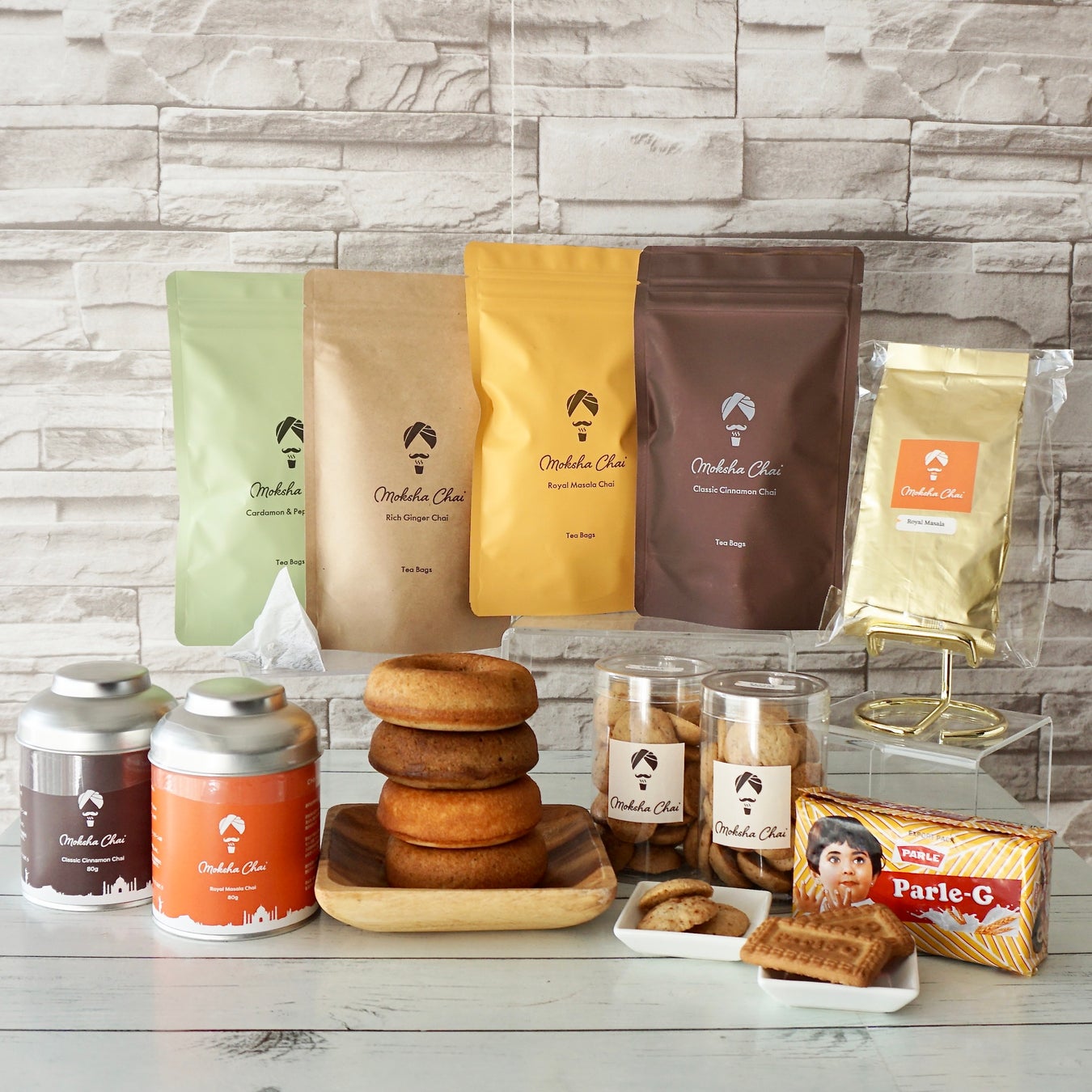 昨年も大人気だったチャイと焼き菓子の福袋です!焼きドーナツとクランチクッキー、そしてチャイに浸して食べるとさらに美味しいインドで有名なパルレGビスケットがセットになった数量限定品です!