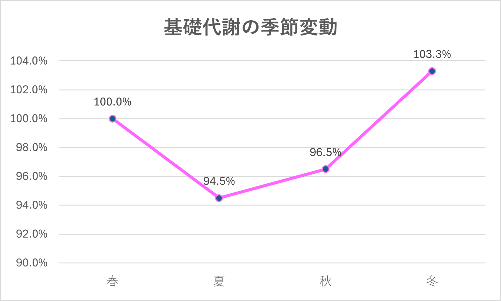 下の図は各季節の基礎代謝変動を表したものです。(*3)