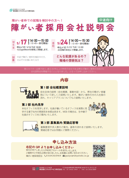 東京都ビジネスサービス、【5月度】障がい者採用 会社説明会を開催