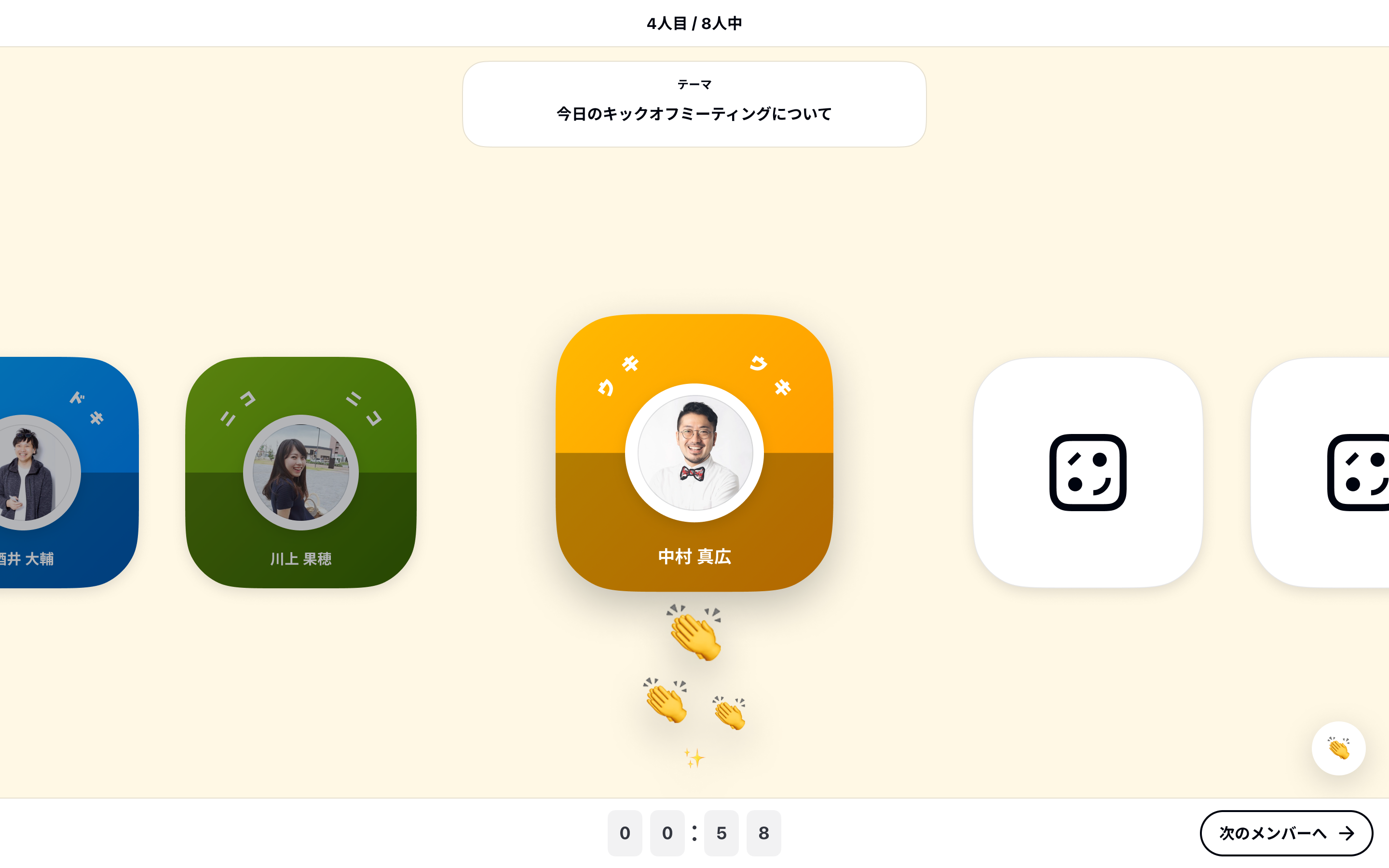 お互いのコンディションを知ることができたり、近況が聞けてその後の雑談のきっかけになったりと、参加者同士が関係性を育んでいく上での下地づくりに効果的です。