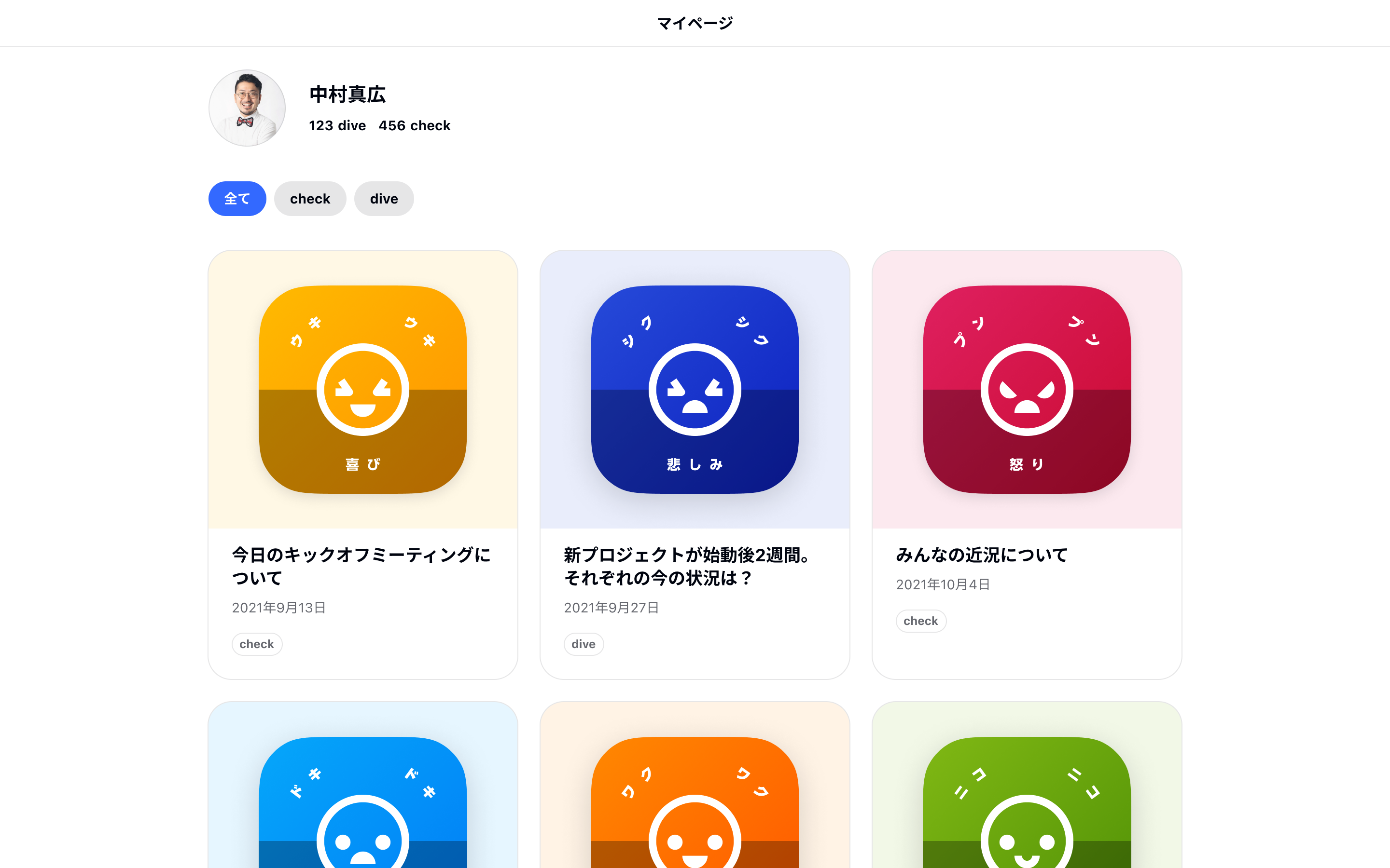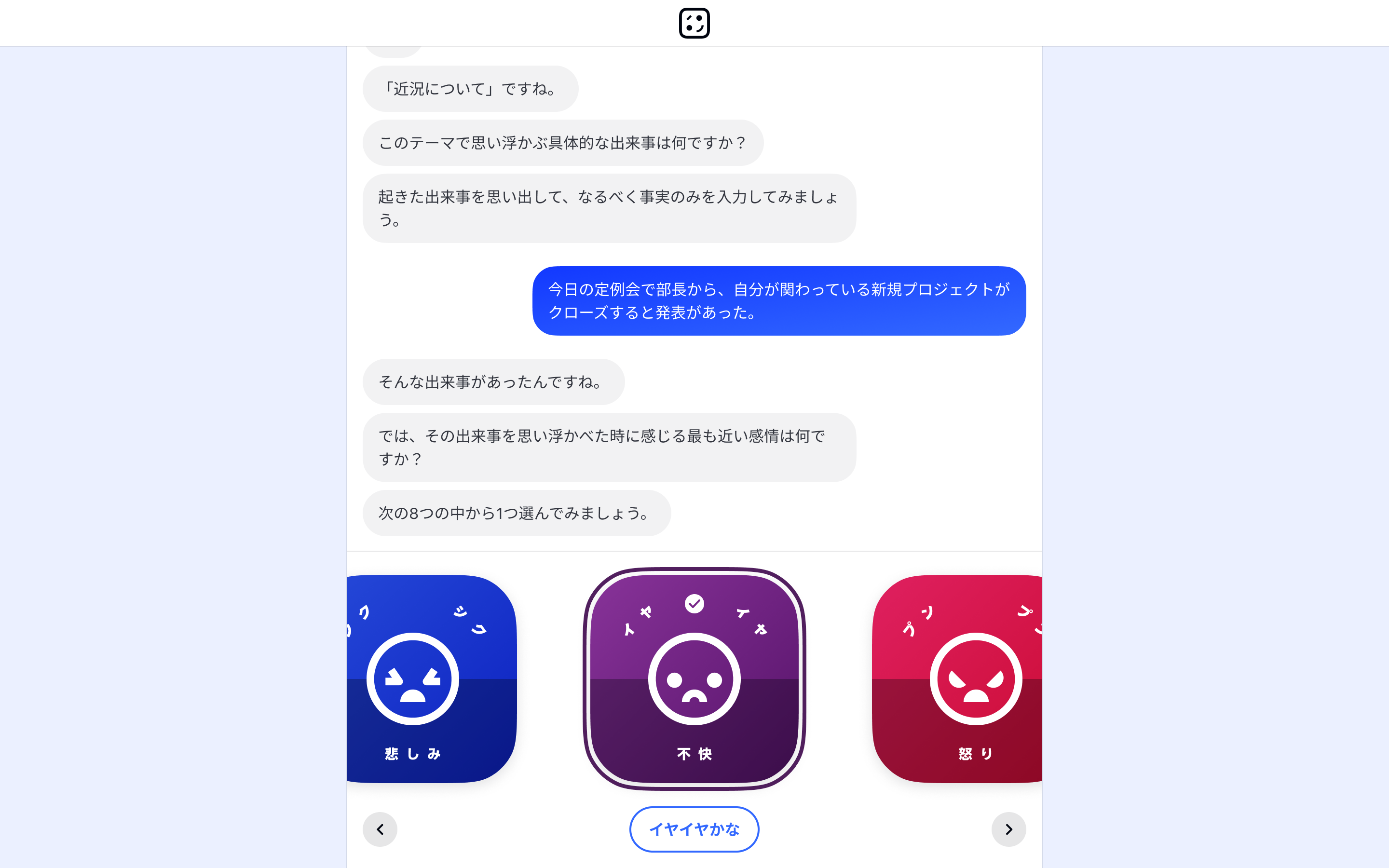 「emochan」は、日々の対話のきっかけをつくり、進行をガイドする、対話の場づくりツールです。