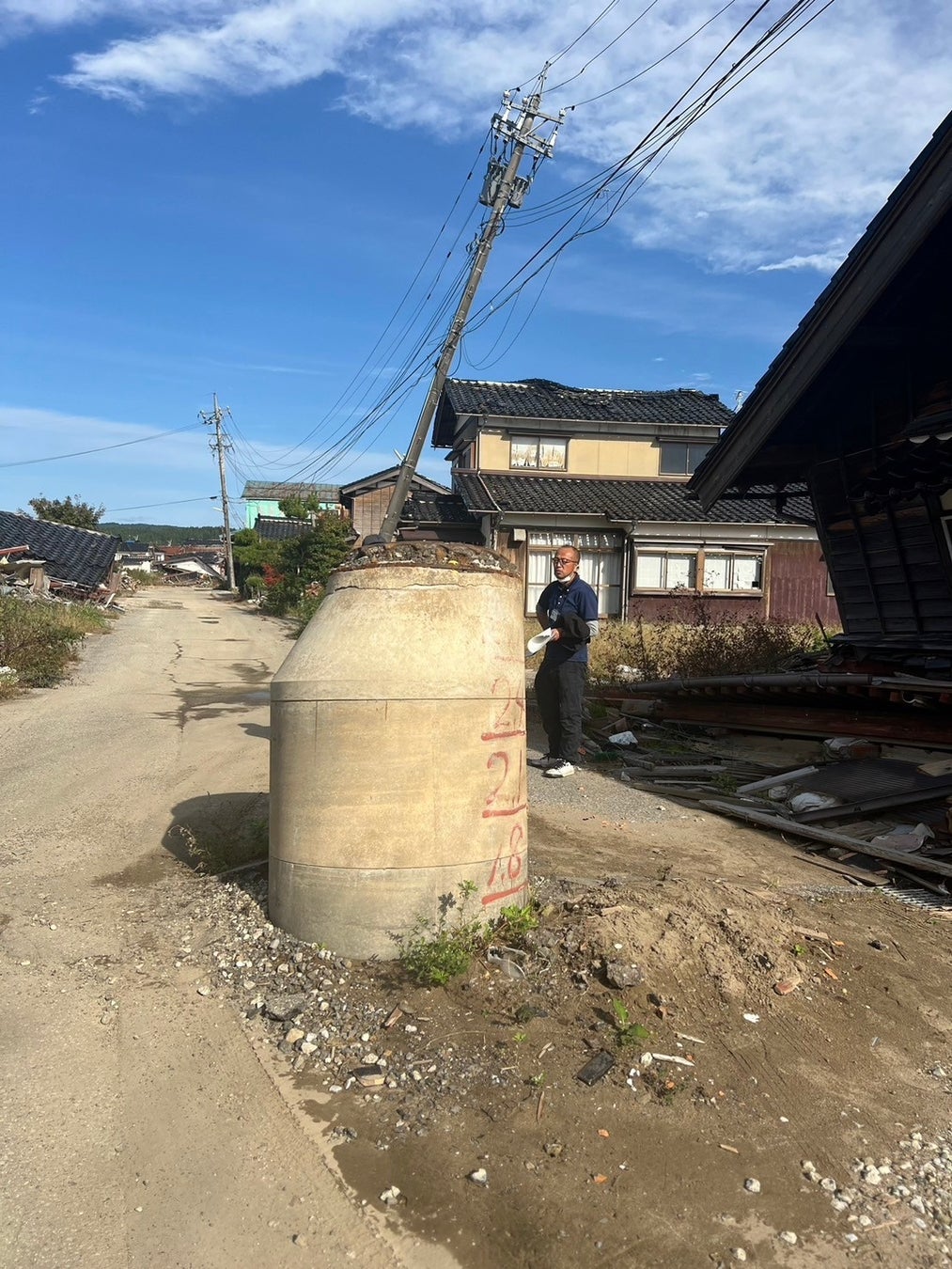 今年は「令和6年(2024年)能登半島地震」及び、「令和6年奥能登豪雨」を支援する為に企画された「能登半島に水10万本を届けようプロジェクト」の一環として、10月末に約12,000本の飲料水を能登に届け、更に現地に足を運びボランティアとして支援活動を行いました。現地は、道路は何とか確保されているものの未だ災害直後のような光景が広がっており、支援の人手が大幅に不足しているのが現実です。