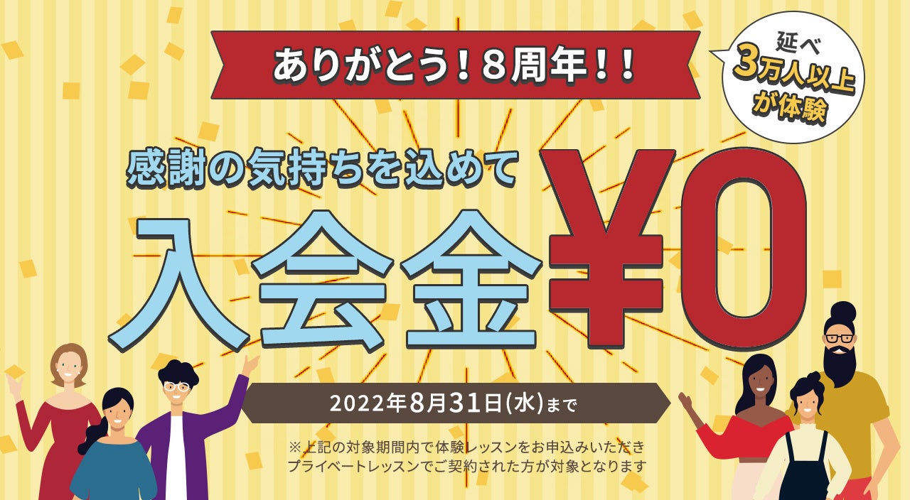 おかげさまで8周年!創業以来初の入会金無料キャンペーンを実施!
