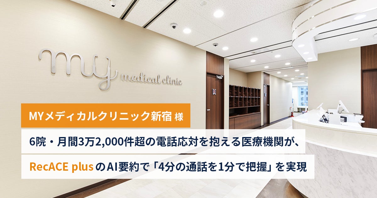 【株式会社アセンド】6院・月間3万2,000件超の電話応対を抱える医療機関が、AI要約で「4分の通話を1分で把握」を実現。MYメディカルクリニック新宿における「RecACE plus」の導入成果を発表