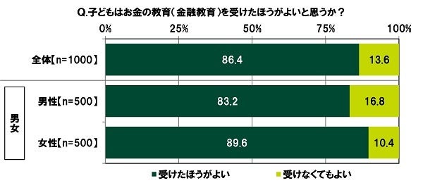 - 「子どもはお金の教育(金融教育)を受けたほうがよいと思う」86.4% どのくらいの時期から受けるのがよいと思う? 最多は「小学生」で46.4%
