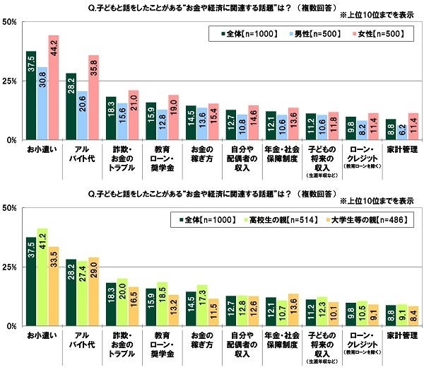 - 子どもと話をしたことがある“お金や経済に関連する話題” 1位「お小遣い」2位「アルバイト代」3位「詐欺・お金のトラブル」