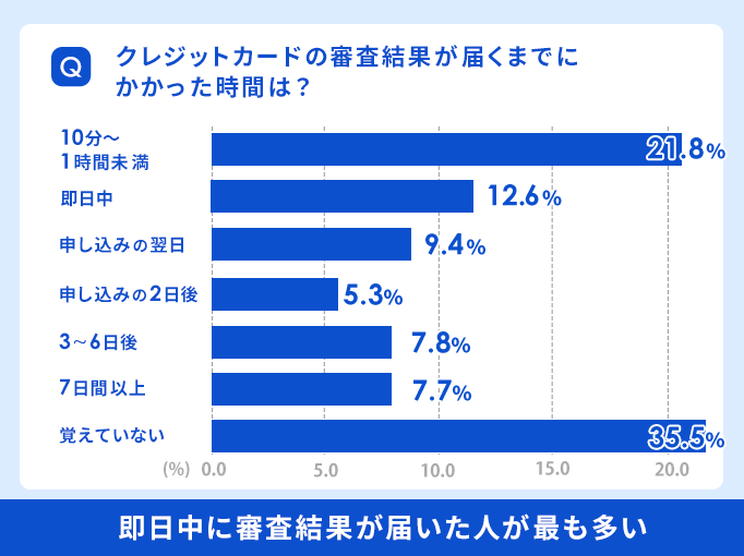 クレジットカードの審査結果は『即日中』に届くという回答が多い