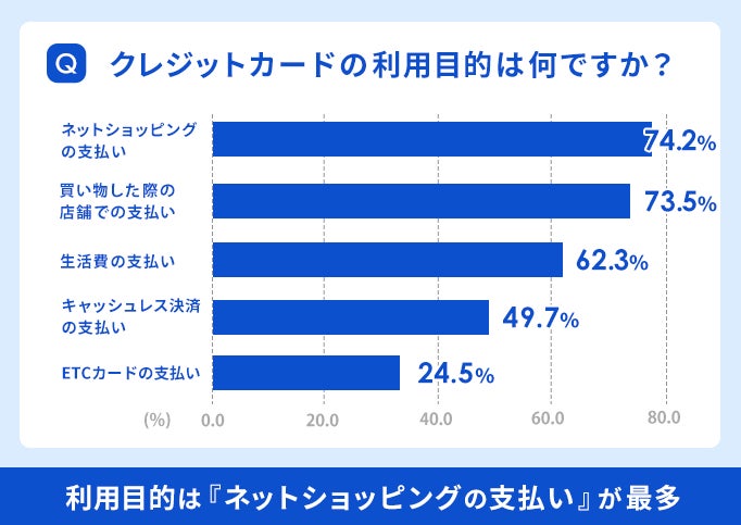 クレジットカードの利用目的は『ネットショッピングの支払い』(74.2%)が一番多い
