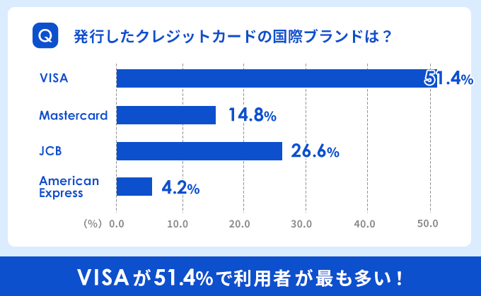 直近1年以内に契約したカードブランドは『VISA』と回答した方が51.4%と過半数を占めました。