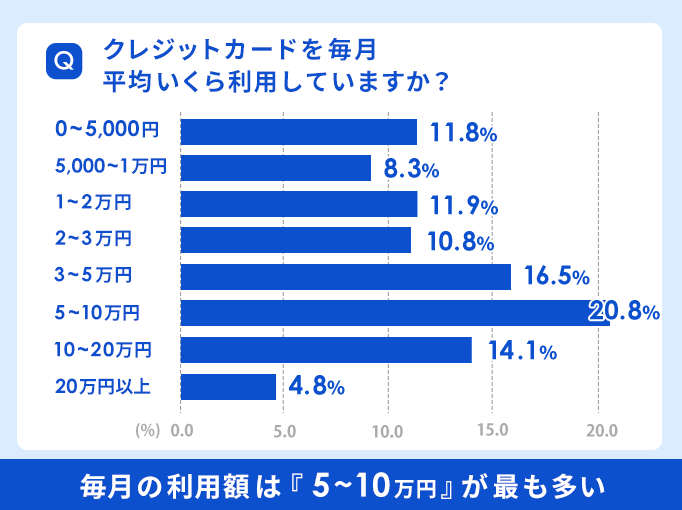 毎月のクレジットカード利用額は『5~10万円』と最多回答