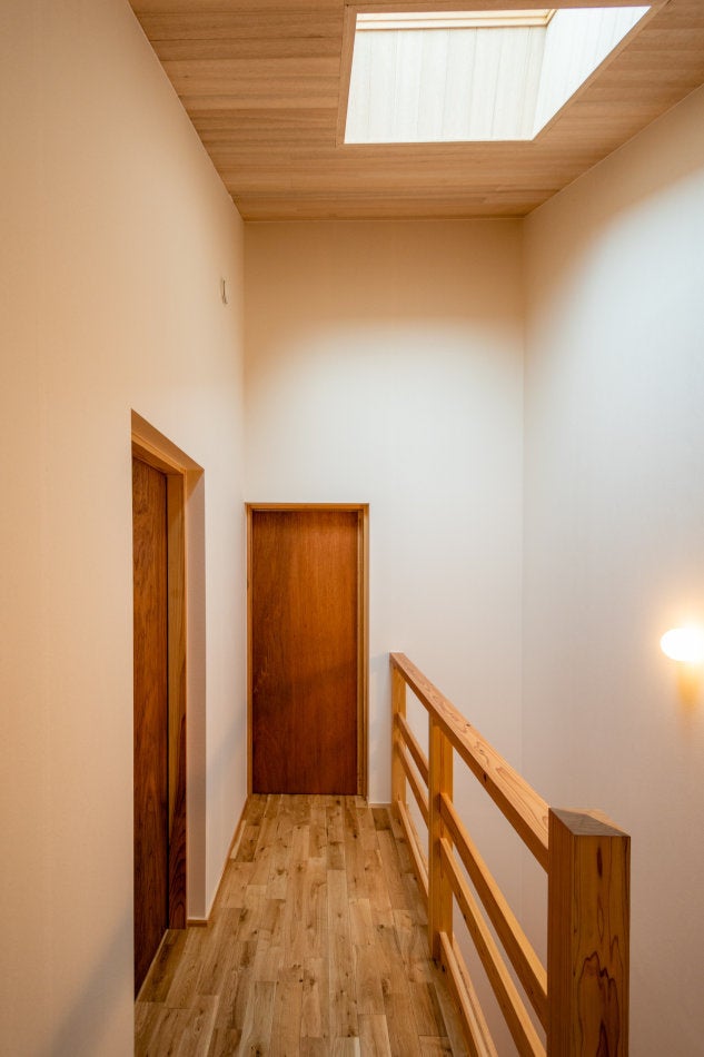 吹き抜けに面したタタミラウンジは天井が低くて落ちつく