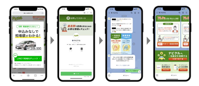 かんたんな情報を47秒で入力するだけで、最大10社の車買取業者に無料で査定を依頼できます。査定申込後、愛車がいくらで売れるのかを概算価格としてチェックすることができるのもポイントです。今後も一括査定サイト「ナビクル」は、お客様のカーライフに寄り添う存在であることを目指してまいります。