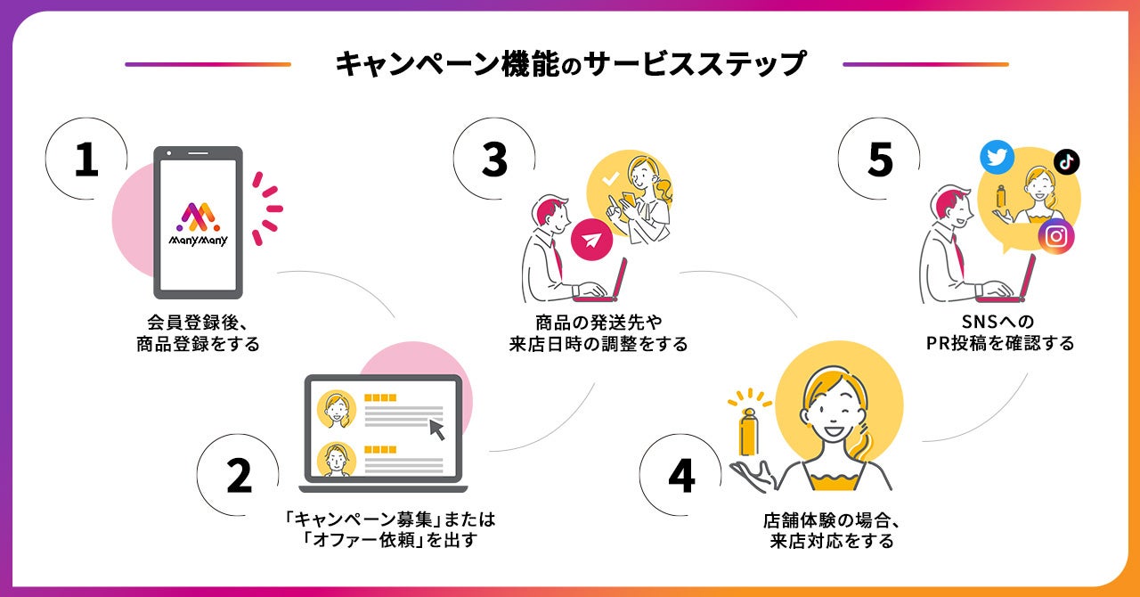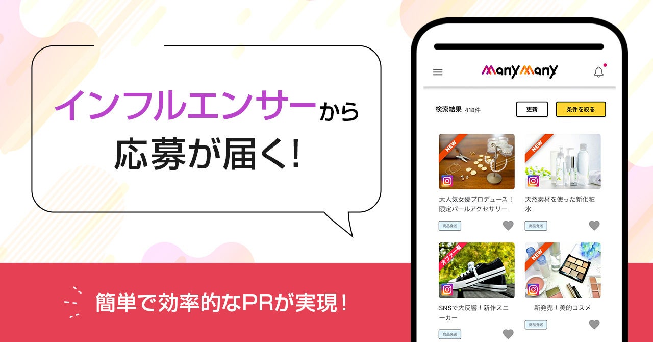 株式会社エヌリンクス(本社:東京都豊島区、代表取締役:栗林憲介)は、インフルエンサー向けお仕事アプリ「Many×Many(https://www.manymany.jp/)」のキャンペーン機能をリリースしました。