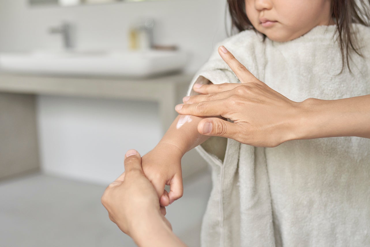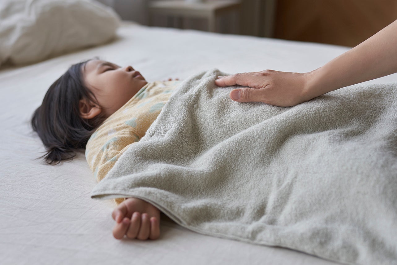何にでも興味を持って動きまわる、元気いっぱいで目を離せない子どものために、ふわっと簡単に着せられる「kids bath wear」ができました。2021年7月に発売した「h tag」の人気製品、肌を傷つけない特殊糸で作られた「bath towel(バスタオル)」の生地をベースに、着衣に適した「kids bath wear」専用生地を開発。低刺激なふわふわ感をそのままに、入浴後のデリケートなお子さまの肌をやさしく包み込みます。