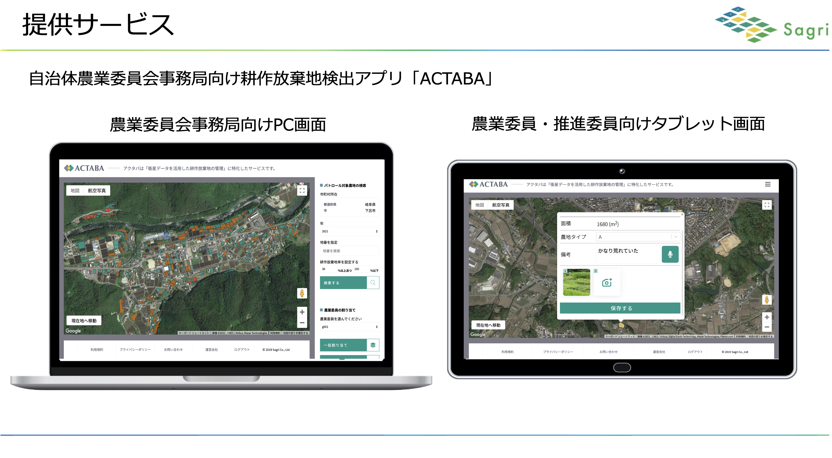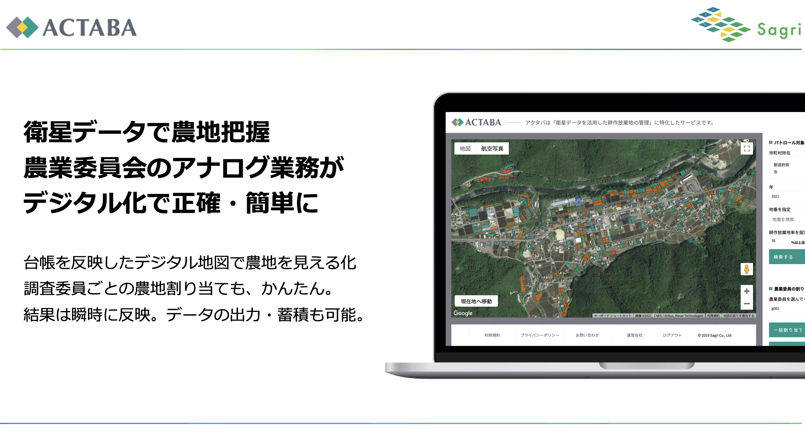 また、現在、山口県ではシビックテックチャレンジYAMAGUCHIを通じて、衛星データを活用して、作付け調査(圃場に植わっている作物の目視確認業務)を効率化する実証を行っております。これらも衛星データから”アクタバ”と同じようにサポートできる状態へと近づいてきております。