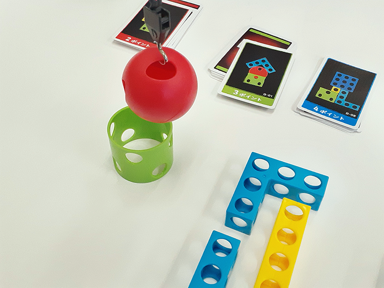やることは、お題カードの通りにブロックを素早く積み上げるだけ。