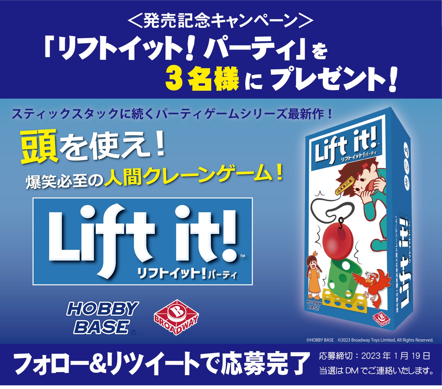 『リフトイット!パーティ』の発売を記念して、ホビーベースのTwitterアカウントにて『リフトイット!パーティ』のプレゼントキャンペーンを実施します。
