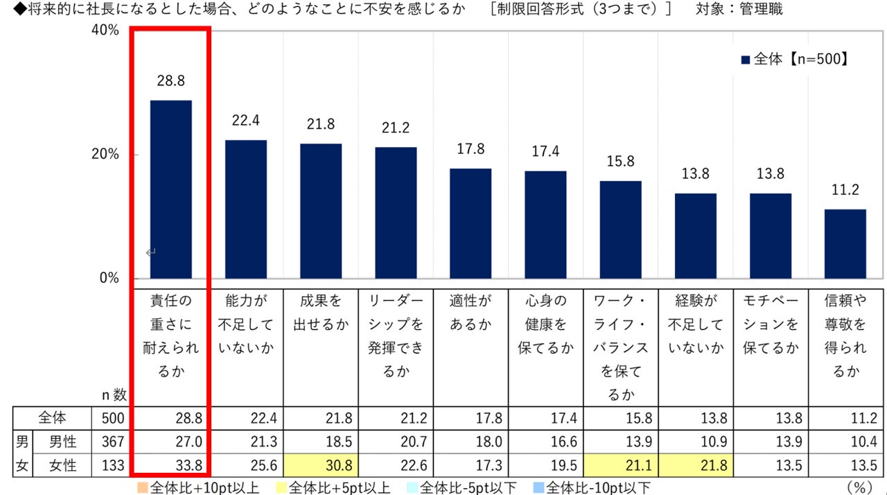 管理職・社長になることへの不安 1位は“なりたくない理由”同様に「責任の重さに耐えられるか」
